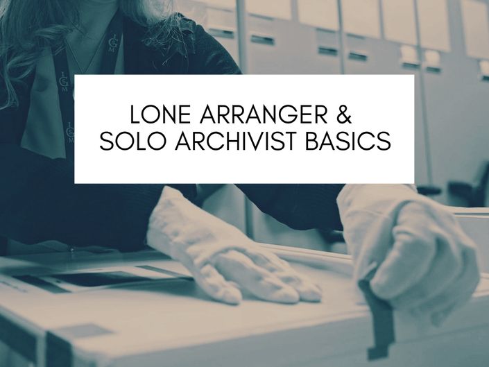 Being a lone arranger (aka a solo archivist) is a job like no other. This course will help you understand how to operate an archive on your own as well as overcome the unique situations faced by solo archivists including creating policies, processing collections, disaster management, and budgeting.